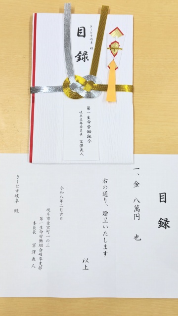 第一生命労働組合岐阜支部様より寄付をいただきました